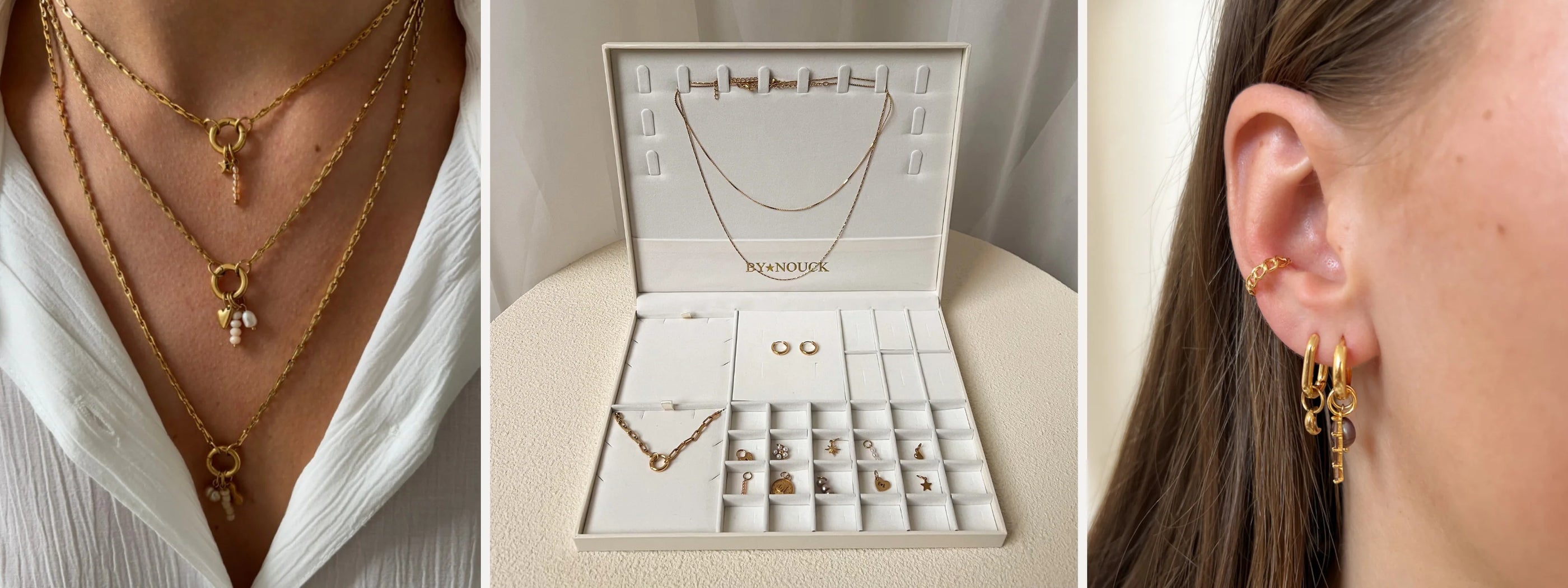 Create your own unique jewelry set with ByNouck's Fill The Box concept! Start with a jewelry box with base pieces, then add at least 10 charms to get 50% off the entire set (box, base products, and charms included).